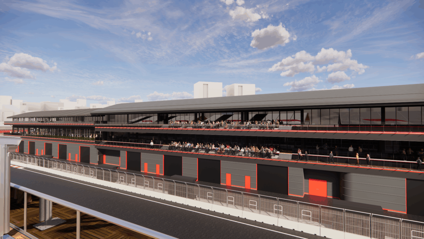 Estos pabellones, de tres plantas y 17 metros de altura cada uno, cumplirán con todos los requisitos de la FIA y Formula One Management. La planta baja albergará los contenedores y garajes de los equipos, junto con las áreas técnicas y de servicio con accesos diferenciados para el personal y la logística.